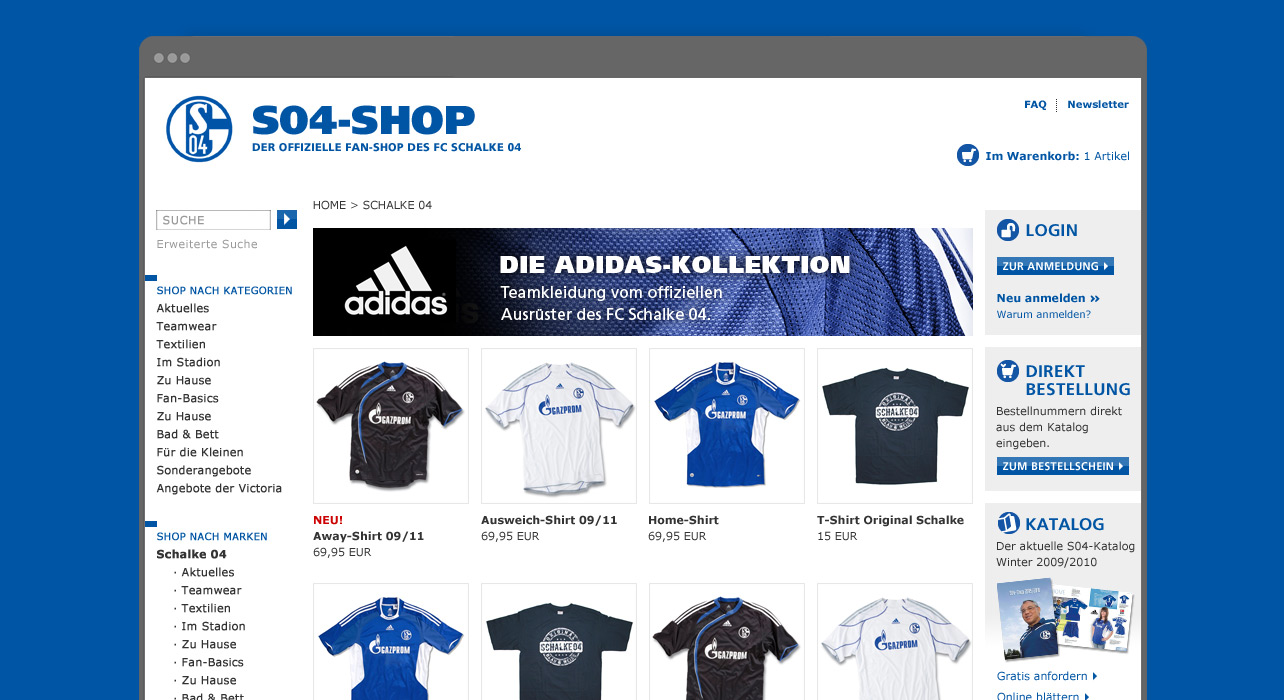 Create a modern shop for FC Schalke 04 fans that will make them feel at home and where they’ll find their way around easily.